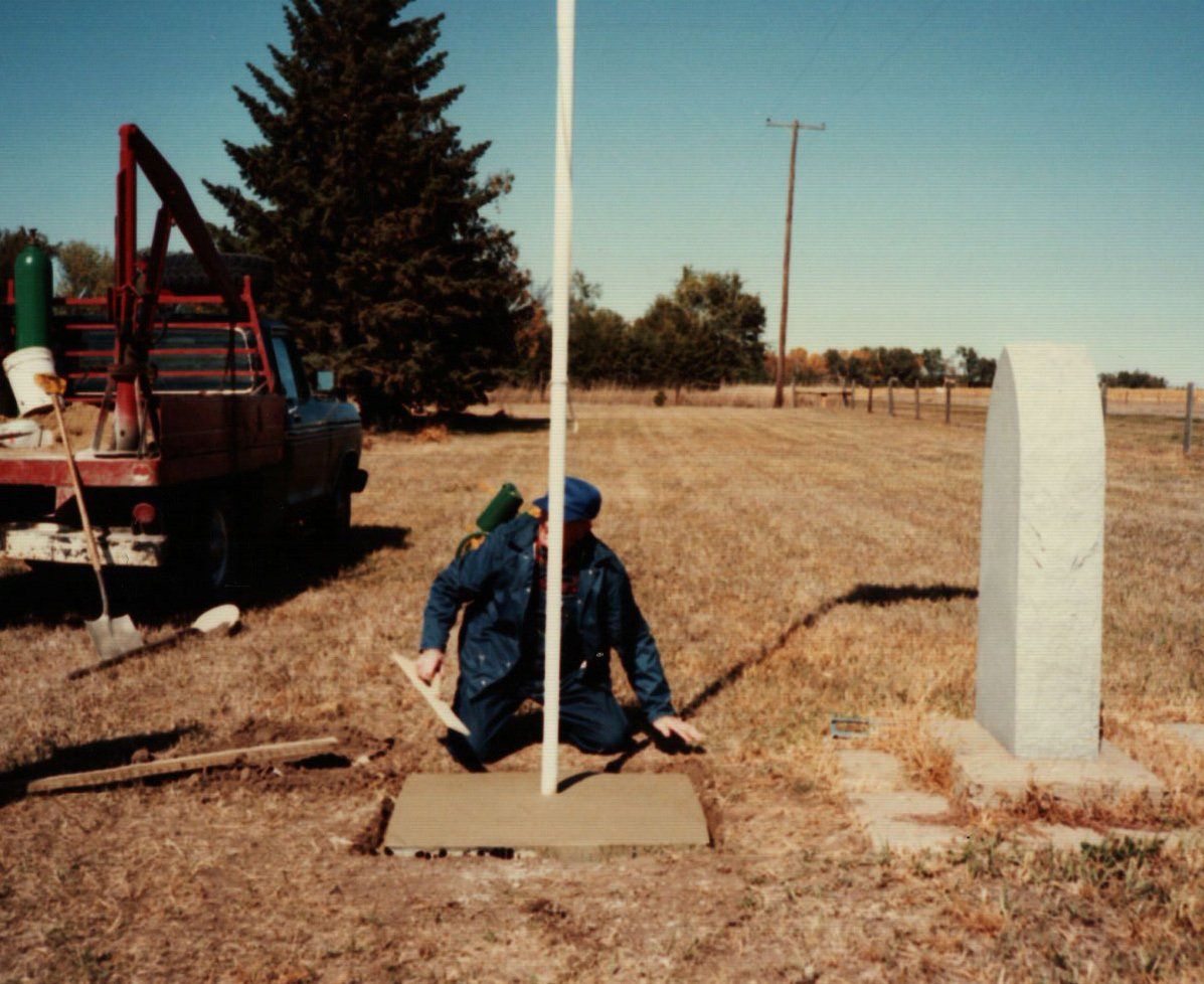 In the spring of 1992, Ronald Hansen Sr. and Alton Schmitt installed a donated flag pole behind the Church Marker. The U. S. Flag was flown on various occasions until the summer of 2011 when a solar light was added enabling us to fly the flag 24 hours a day.