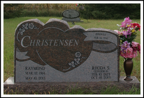 Rhoda was preceded in death by her husband on May 10, 2013, her parents and stepmother, Eva; sisters and brothers-in-law Lois and Carl Hansen, Gladys and Ronald Hansen, James Pennington and infant brother, a daughter and son-in-law, Lana and Burel Doll; a son-in-law, Robert Blair; and a great-grandson, Jacob Kneale, and a special Aunt Emma (Sonderup) Rasmussen who helped raise her and her three older sisters after Rhoda's mother died when she was eleven months old.